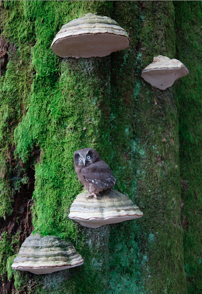 Les polypores qui forment des tablettes sur l’arbre qui les accueille ne lui sont pas forcément fatals ! Et peuvent même être le support de visiteurs.